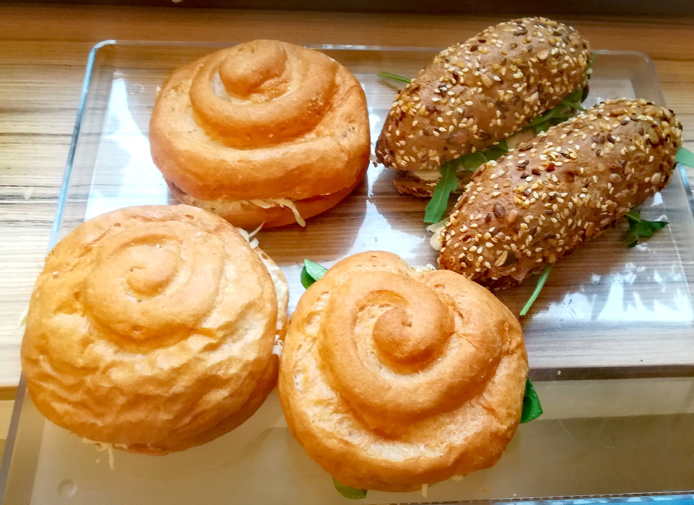 a sestaví si dle chutě tmavý dalamánek nebo světlou bulku, kterou odděleně zapékáme, s odděleným toastrem. Zatím máme bezlepkové pouze středy, ale jak se budeme rozrůstat,